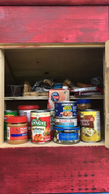 Our Director and Founder Susan Brown is joined by our Chief Financial Officer Aaron Brown Ortiz, and Chief Marketing Officer Tyler Brown-Ortiz. Our pantry box builder is Chris Grejtak. Larry Woodcock serves as our deployment specialist. The signs on our boxes are designed by Denise Lukienchuk. Tor Blackstad is our Community Engagement Director and Sue's Craziness Manager.